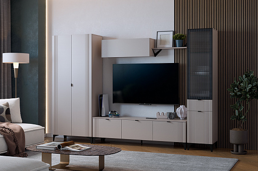 Гостиная "Рич К4" (2850х420х1900 мм) кашемир/фрапучино матовый/черный из каталога Модульные гостиные купить в Краснодаре в магазине мебели онлайн Мебельсон по цене 74 080 ₽