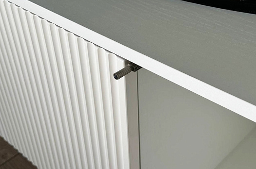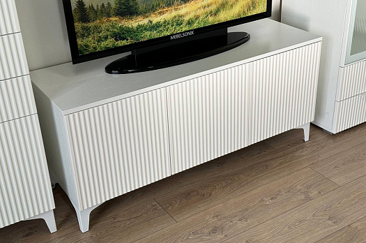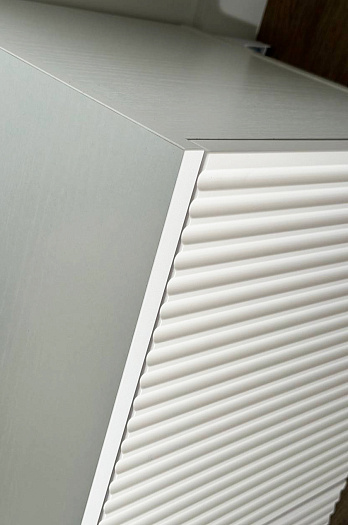 Гостиная "Зефир К1" (2200х424х1900) белое дерево/белый муар/белый (эмаль) из каталога Модульные гостиные купить в Краснодаре в магазине мебели онлайн Мебельсон по цене 58 100 ₽