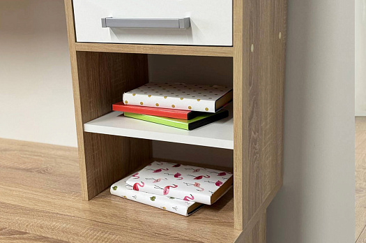 Данная надстройка оборудована вместительными полками, предназначенными для хранения книг, учебников, папок и другой необходимой документации. Также на этих полках можно разместить офисную технику, такую как сканер или принтер.