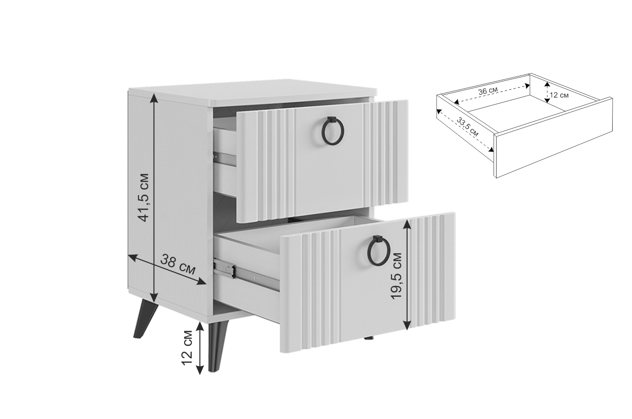 Тумба прикроватная с двумя шуфлядками, комплект Ева купить в Краснодаре