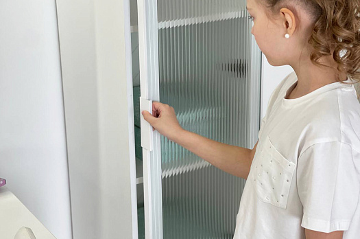 • Материал фасада: МДФ, эмаль матовая, профиль,стекло