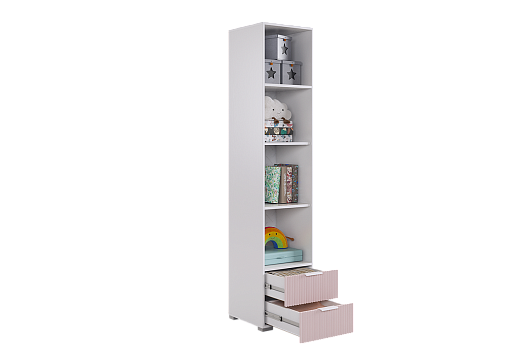 Зефир Шкаф однодверный 107.03 белое дерево/белый муар/пудра розовая (эмаль) из каталога Детские стеллажи купить в Краснодаре в магазине мебели онлайн Мебельсон по цене 26 535 ₽