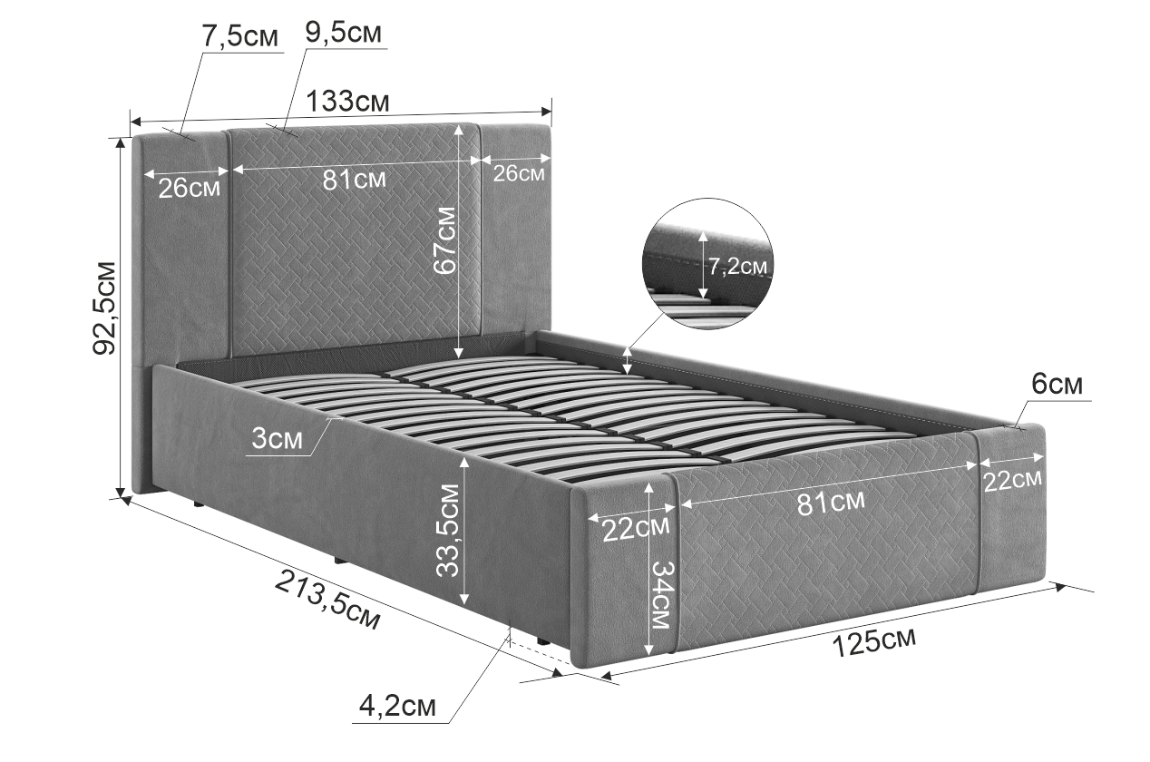 • Материал изголовья: ЛДСП, ткань