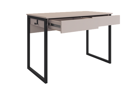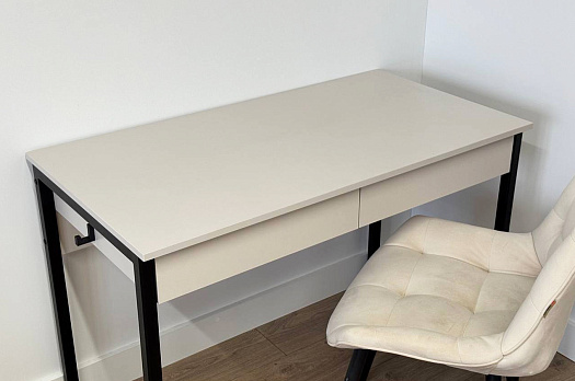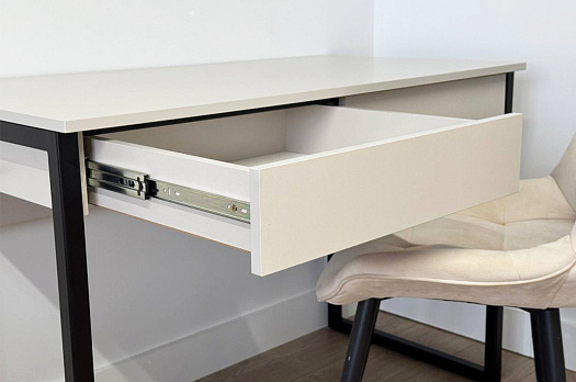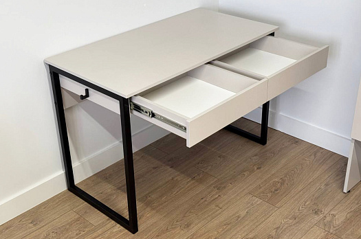 Стол на металлических опорах с двумя выкатными ящиками на шариковых направляющих, усиленный и надежный каркас, благодаря металлическому ребру жесткости под столешницей,