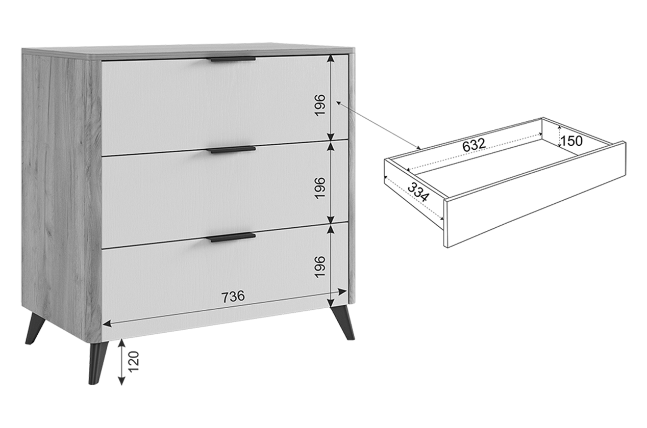 Состоит из: 3-х ящиков.