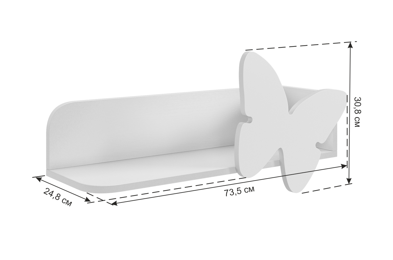 Полка навесная "Бабочка" - идеальный выбор для тех, кто стремится придать своему интерьеру особую нотку изящества и романтики. Эта навесная полка размером 735х250х308 мм будет отличной добавкой к детской комнате, особенно если это детская "Зефир".