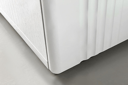Мы используем только высококачественные материалы: корпус из ламинированного ДСП белого дерева, а фасады выполнены из МДФ, облицованного матовой белой пленкой ПВХ. Вертикальные полосы на фасаде добавляют изысканности и неповторимости данному изделию. Благодаря толщине ламинированного ДСП в 16 мм, шкаф обладает высокой прочностью и долговечностью. По бокам вы найдете пвх кромку толщиной 0,4 мм для максимальной защиты от повреждений.