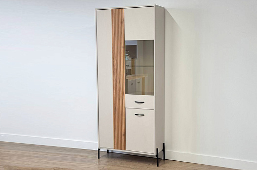 Доминика Шкаф двухдверный (со стеклом) кашемир/дуб крафт золотой из каталога Витрины купить в Краснодаре в магазине мебели онлайн Мебельсон по цене 19 730 ₽