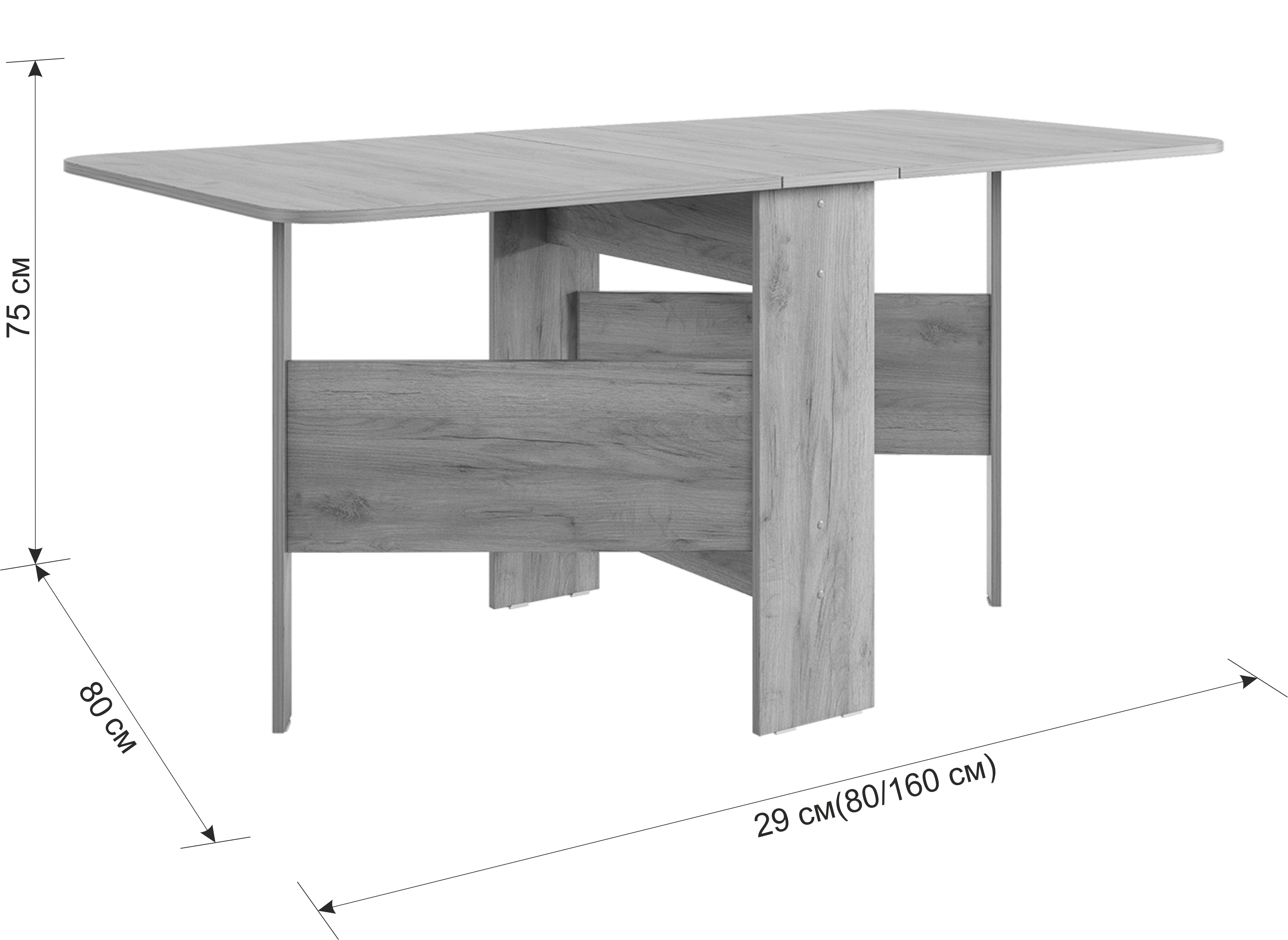 Разложение стола осуществляется путем поднятия одной из створок, выдвижения опоры и последующего опускания створки до полного соединения. Выберите Стол-книжка раскладной Мечта 2 и наслаждайтесь комфортом и качеством!