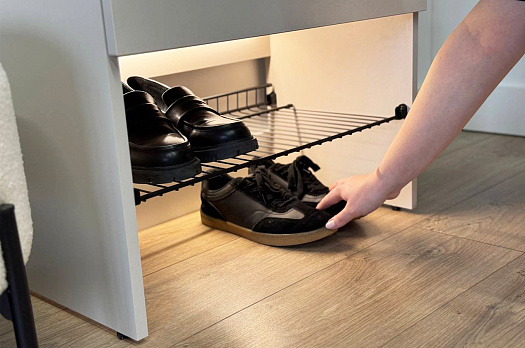 Полка "L600" легко интегрируется в шкафы "Баско", добавляя им еще больше практичности и удобства. С ее помощью вы сможете максимально эффективно организовать хранение и поддерживать порядок в вашем шкафу.