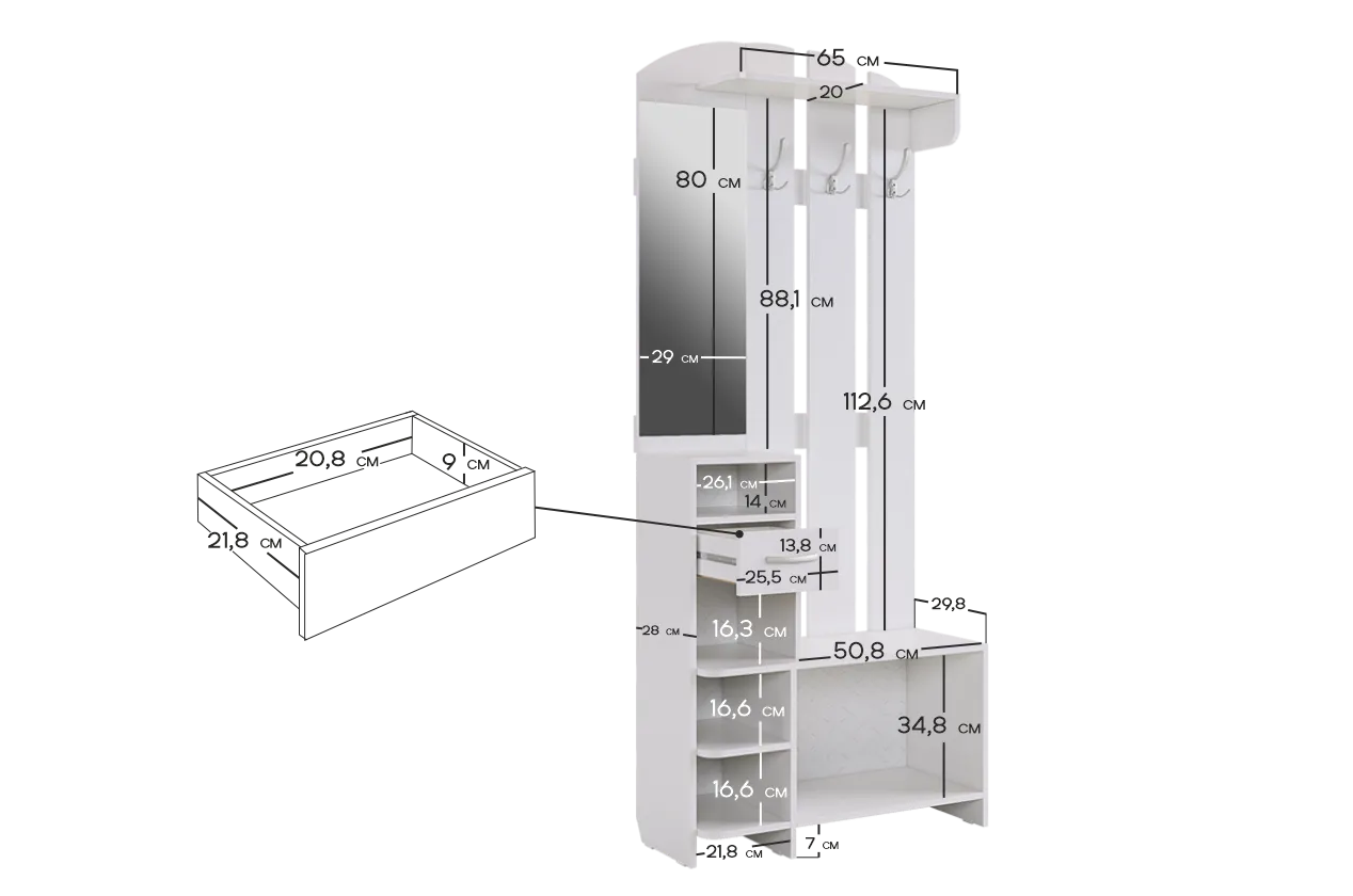Высота тумбы для обуви: 434 мм.