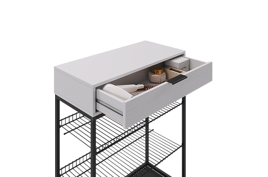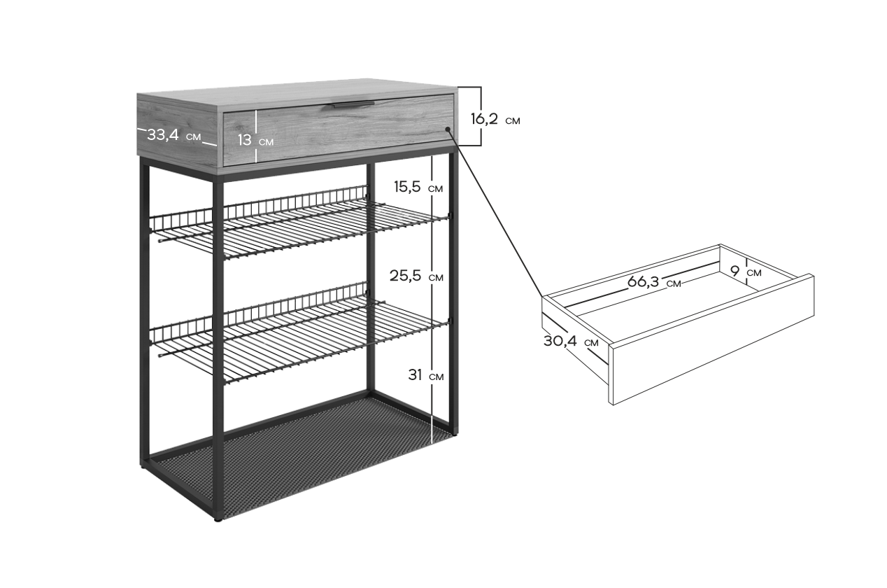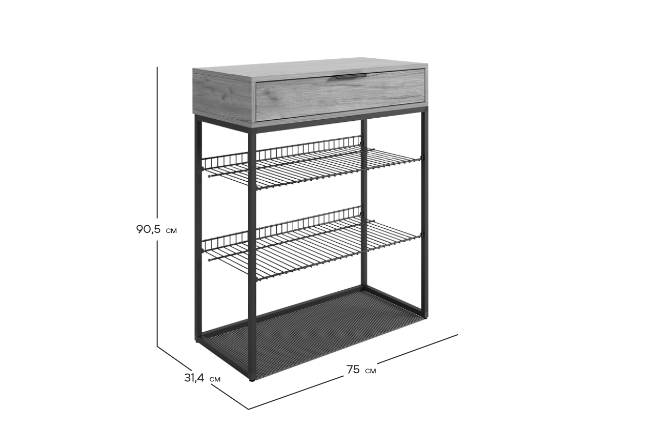 Обувница Краш прекрасно сочетает в себе стиль и функциональность. Её дизайн в стиле лофт идеально подходит для современных интерьеров. Выдвижной ящик с шариковыми направляющими обеспечивает бесшумное и плавное открывание, предоставляя удобный доступ к вашим аксессуарам и мелочам. Регулируемые опоры и специальный коврик обеспечивают дополнительный комфорт и защиту.