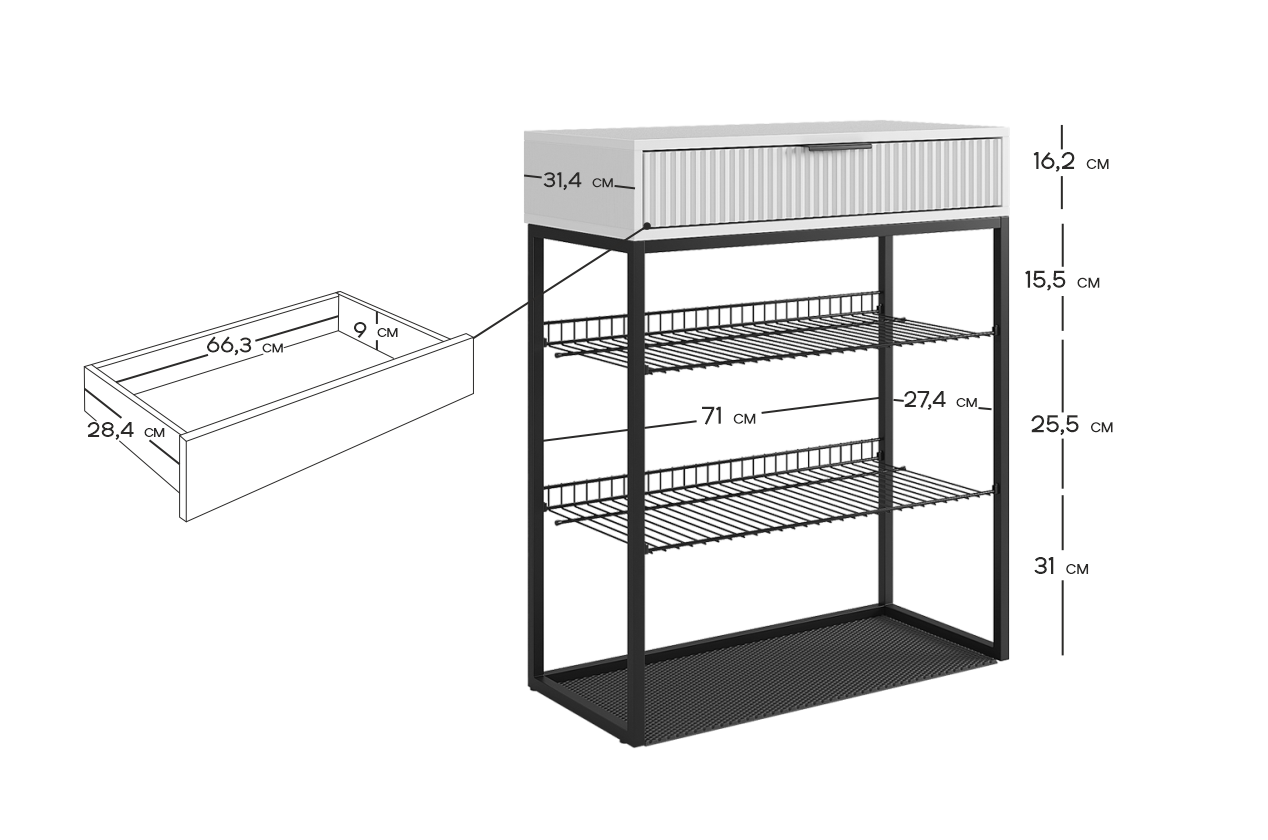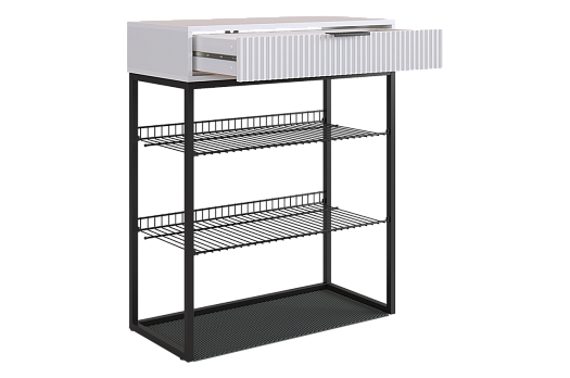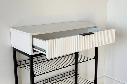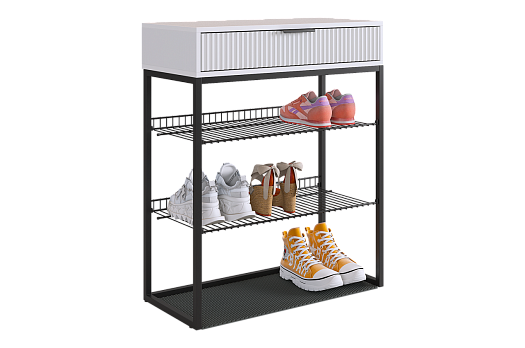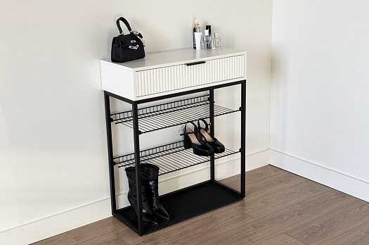 Обувница Вельвет прекрасно сочетает в себе стиль и функциональность. Её дизайн в стиле лофт идеально подходит для современных интерьеров. Выдвижной ящик с шариковыми направляющими обеспечивает бесшумное и плавное открывание, предоставляя удобный доступ к вашим аксессуарам и мелочам. Регулируемые опоры и специальный коврик обеспечивают дополнительный комфорт и защиту.