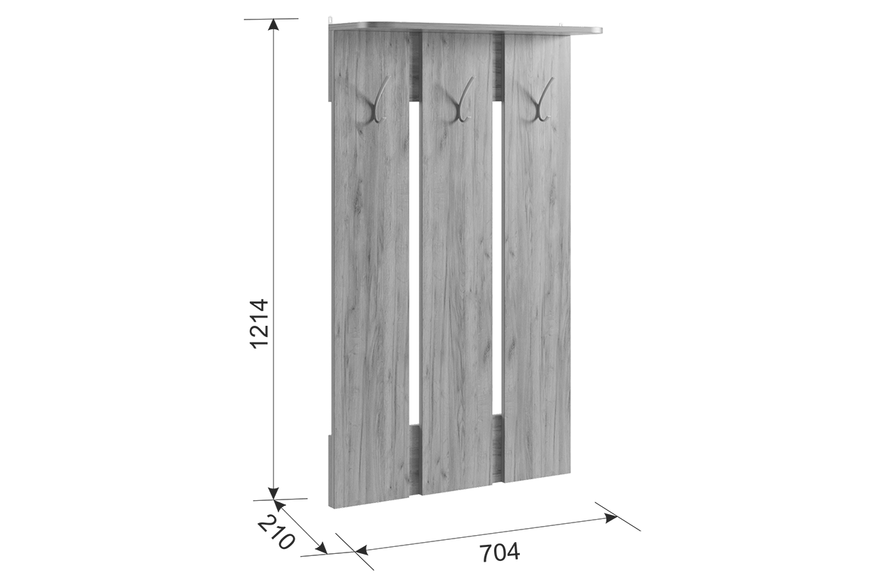 Вешалка Реал 1 - это прекрасное решение для малогабаритных пространств. Отсутствие избыточных деталей и симметричный дизайн делают ее универсальной и адаптируемой к любому интерьеру. На вешалке предусмотрены металлические крючки, которые идеально подойдут для размещения верхней одежды и сумок. Полка сверху предназначена для удобного хранения головных уборов.