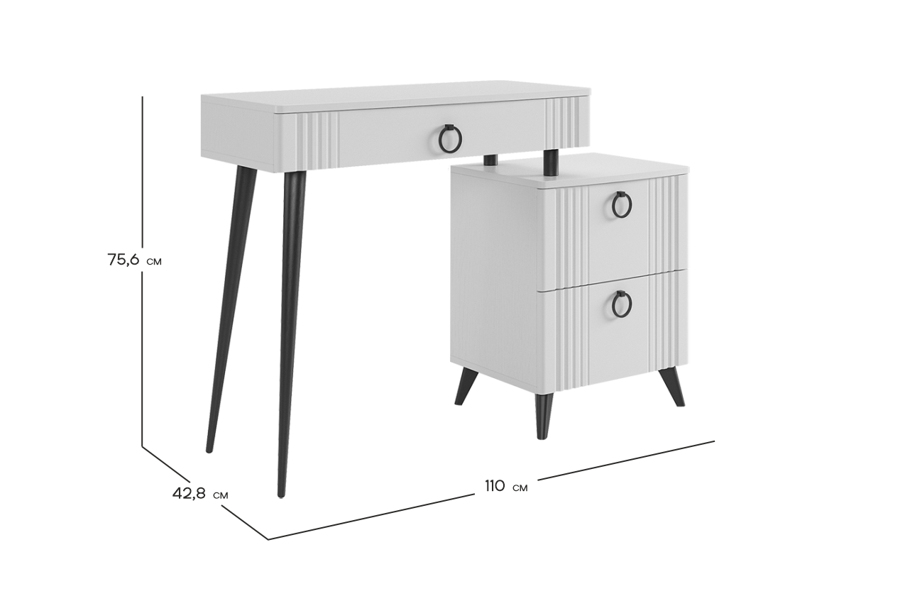Ева Туалетный столик (без зеркала) белое дерево/белый матовый из каталога Трюмо купить в Краснодаре в магазине мебели онлайн Мебельсон по цене 12 485 ₽