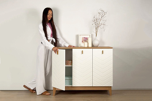 Этот комод – идеальный выбор для тех, кто ищет стильное и практичное решение для хранения в интерьере. Он подойдёт как для современного, так и для уютного скандинавского стиля.
