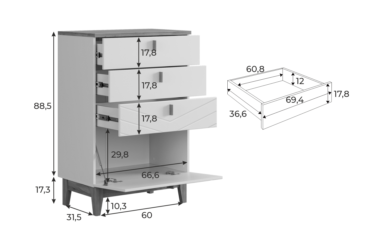 Комод Хюгге – это идеальное сочетание скандинавского стиля, функциональности и качества. Он создан для тех, кто ценит эстетику, комфорт и удобство в интерьере.