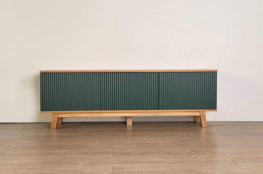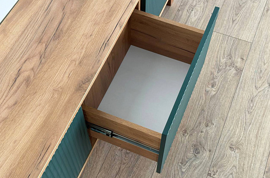 Выкатные ящики оснащены шариковыми направляющими, обеспечивающими плавное и надёжное выдвижение. Высокие опоры из массива дерева не только подчёркивают стиль тумбы, но и позволяют роботу-пылесосу свободно проходить под ней.